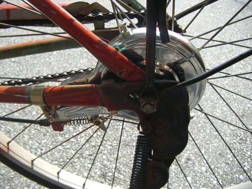 Vanessa的淑女車是他上學接駁捷運站的主要交通工具,不過幾個月前後輪的鼓煞剎車皮居然整個跑出煞盤外,Vanessa上學一定都用飆車的,急煞急停才會壞的那嚴重。急用只好先把整塊剎車皮挖掉。最近比較空閒尋尋覓覓了一個禮拜,有考慮要不要直接改像前輪的一般淑女車夾器,但後輪有偏擺問題剎車力會變差,加上換夾器還得重新拉線、會不會卡到擋泥板也是問題。也有考慮過乾脆不修,但Vanessa還因為這樣誤按煞車結果撞車,所以不修不行,最後決定還是換鼓式剎車。上露天跟台中weijean賣家買花了100+50(運費)+?(匯款手續費),前幾天郵局便利箱寄到了,今早天涼沒事打算來開工。
